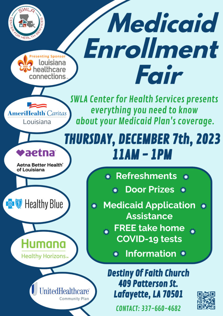 SWLA Center for Health Services will be hosting a Medicaid Enrollment Fair on Thursday, December 7, 2023.